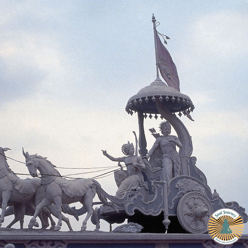 Symbolically, Krishna represents the witness consciousness – the capacity to see clearly without being overtaken by fear, guilt, or attachment. In yogic language, this is buddhi: discernment that arises when we pause long enough to observe rather than react.